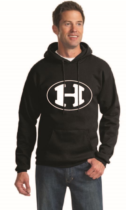 Nothing is better for relaxing than our 9-ounce 50/50 cotton/poly fleece with a 2 ply hood. This is just cozy! Comes in black or dark green with H logo.